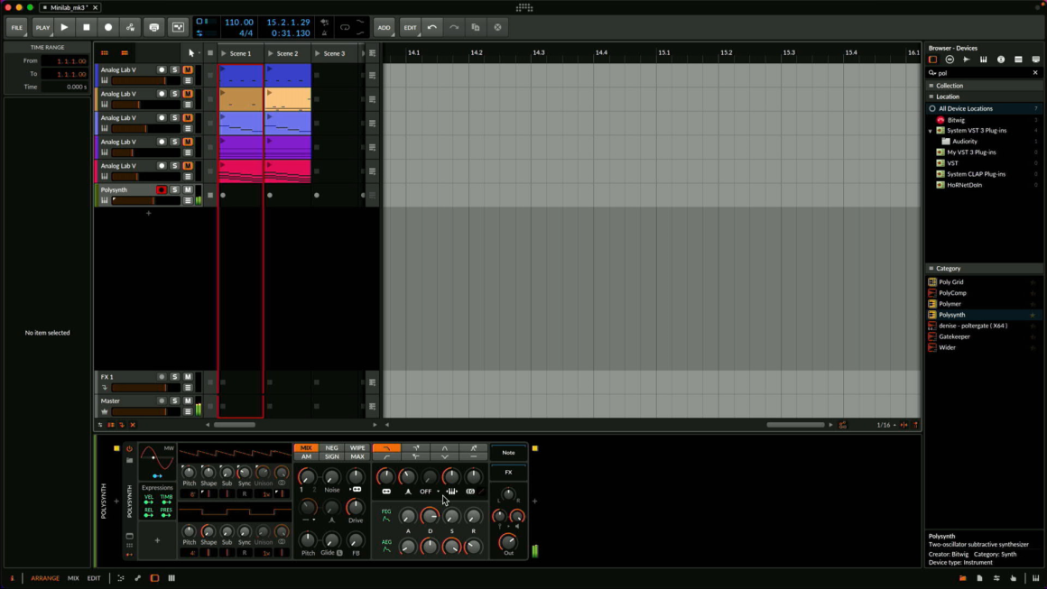 David integra en este caso la DAW Bitwig Studio, pero podría ser Ableton Live, FL Studio, Logic, Bitwig, Reason…. También se conecta por MIDI el sintetizador Waldorf Rocket, e instrumentos virtuales como el Augmented Gran Piano de Arturia…Y he aquí el resultado creativo que ofrece Arturia MiniLab 3.