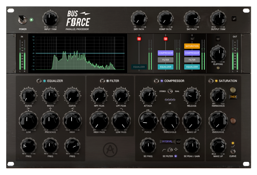Bus FORCE – Con 4 módulos distintos (Filtro, EQ, Compresor y Saturación) potentísimo procesador paralelo.