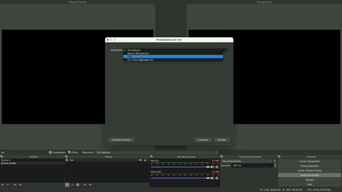Configurando FOX en OBS