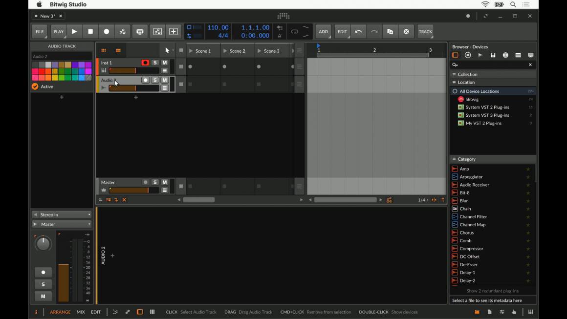 Bitwig es una DAW que posibilita los flujos de trabajo lineales y no lineales tanto para el diseño de sonido, la grabación o las actuaciones en directo.