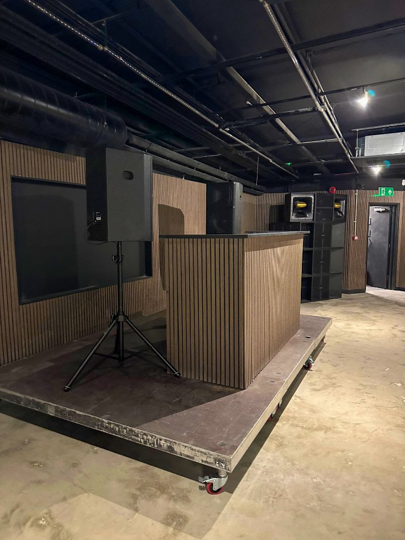 Cosmic Electronics desplegó el sistema de Pioneer PRO AUDIO en todo el espacio. En la sala principal, el montaje incluye tres subwoofers XY-218HS de 18” por lado, altavoces mid-high XY-2E de 8” y un par de altavoces full range XY-152 para monitorizar a los DJs. En la zona de la barra, instalaron altavoces más compactos para que el sonido se ajuste al ambiente de cada área, manteniendo la versatilidad de usarla como sistema independiente o sincronizado con la sala principal.