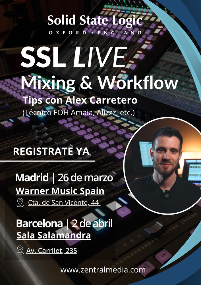 Solid State Logic organiza dos jornadas técnicas exclusivas centradas en el sistema SSL Live, guiadas por el ingeniero de sonido Alex Carretero, responsable del directo de artistas como Alizzz y Amaia. Las sesiones se celebrarán el próximo 26 de marzo en Madrid y el 2 de abril en Barcelona.