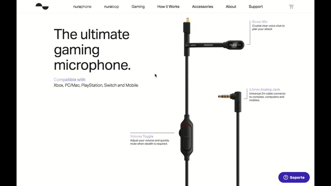 En primer lugar, el micrófono de gaming. Un micrófono de alta calidad que puedes conectar al puerto de carga de los Nuraphone y que te permite conectar el conjunto auricular + micro a través de un conector minijack TRRS.