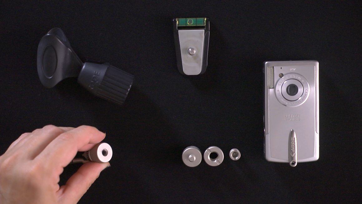 - Un adaptador de 5/8″ macho a 3/8″ hembra para montar accesorios como pinzas o suspensiones de micro en soportes equipados con rosca de 5/8″.