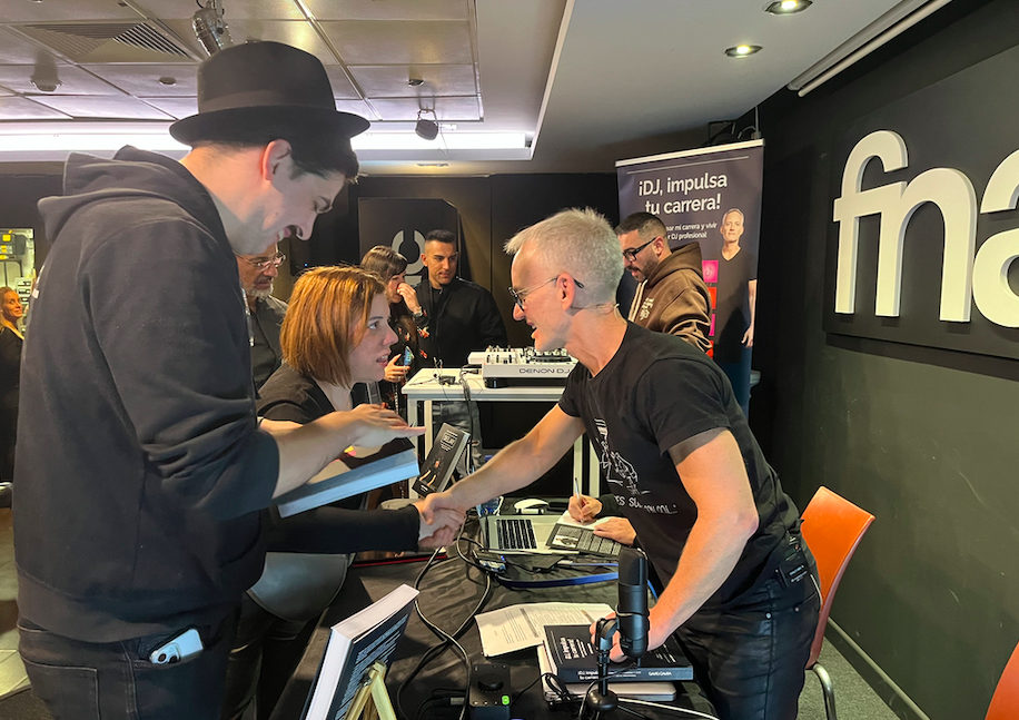 A pesar del “mal entendido” sobre horario, dado que la editorial y los protagonistas anunciaron en sus redes sociales el inicio del evento a las 18h, mientras que fnac convocaba al público a las 19h….todos y todas disfrutamos de la presentación del libro ¡DJ, impulsa tu carrera! y el taller Cómo producir un pódcast y rentabilizarlo el pasado 18 de mayo en fnac Callao (Madrid).